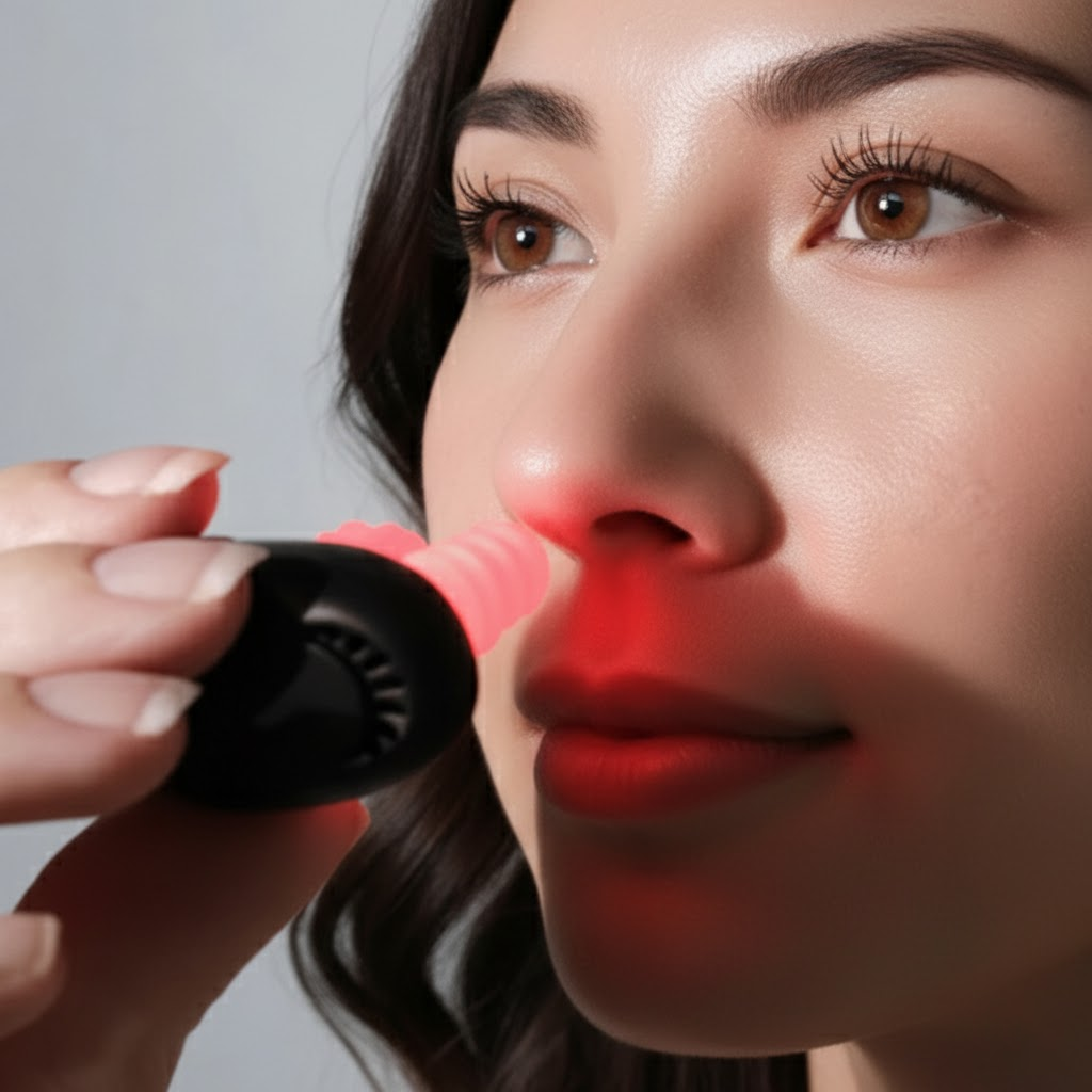 Soft silicone tips deliver a red glow around your nasal area.