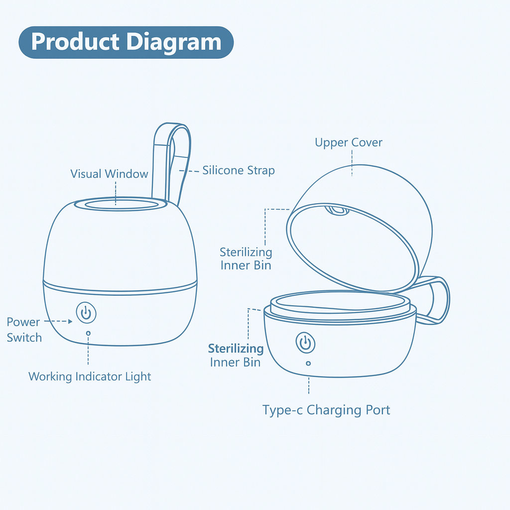 Powered by advanced UV-C technology, it eliminates up to 99.99% of bacteria and viruses, while the sleek, compact, and portable design lets you maintain perfect hygiene anytime, anywhere — at home or on the go.